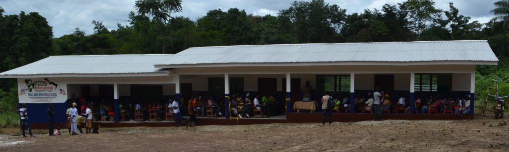 With the generous support from its individual and corporate sponsors, the construction work of the school started thus immediately. After its completion, a modern primary school building was dedicated to the people of Small Bong Mines community in Bopolu district, Gbarpolu County on September 6, 2019. The building contains five furnished classrooms with an office for the administrative staffs.