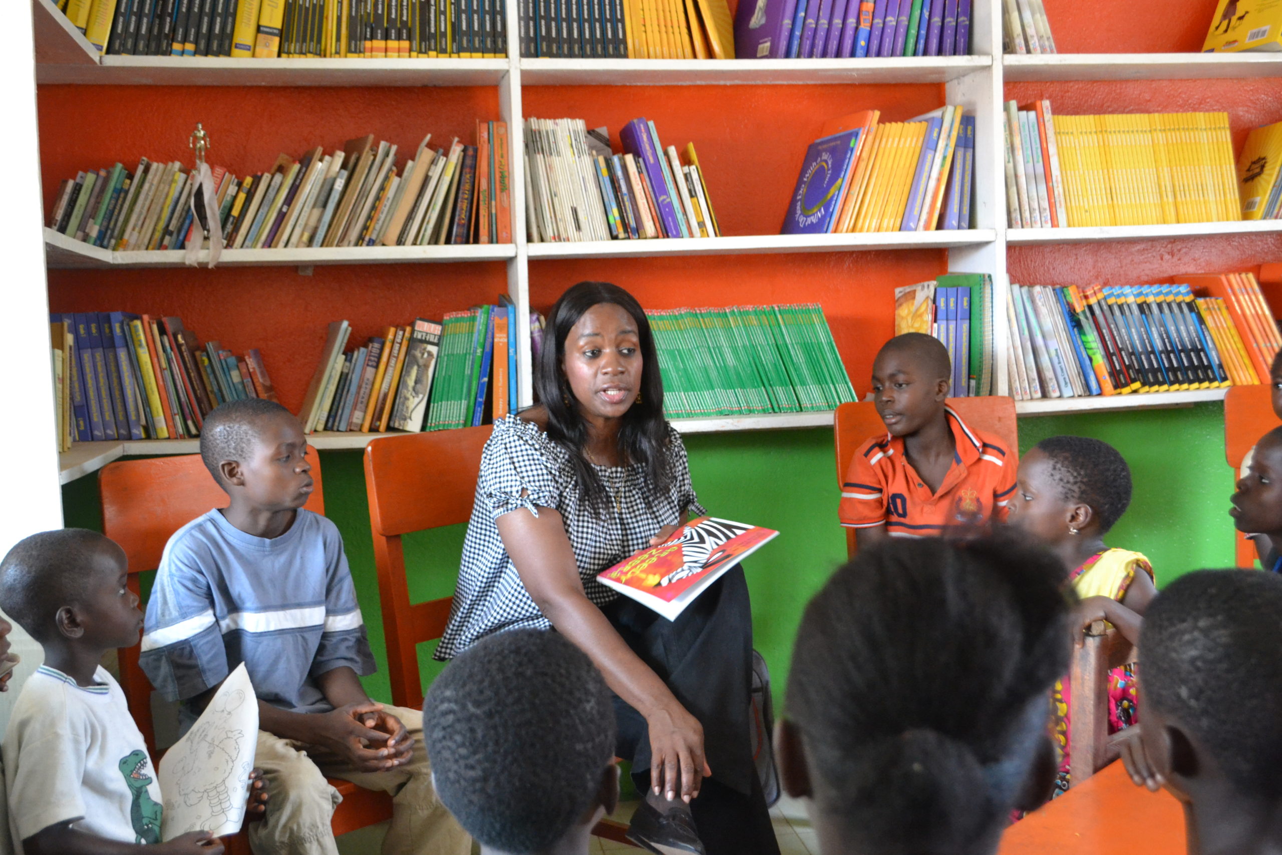Madam Weah read two books during the 2 hour reading session– “Greedy Zebra and Anansi” and “The Pot of Beans” – to over 40 who attentively listened, asked questions and learned new words.
