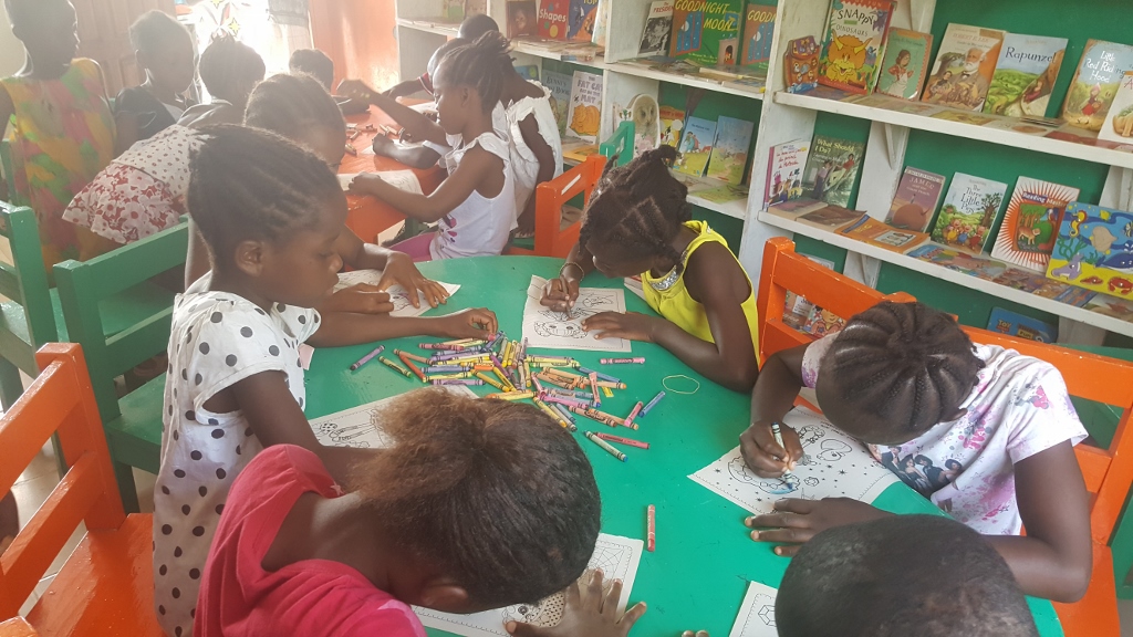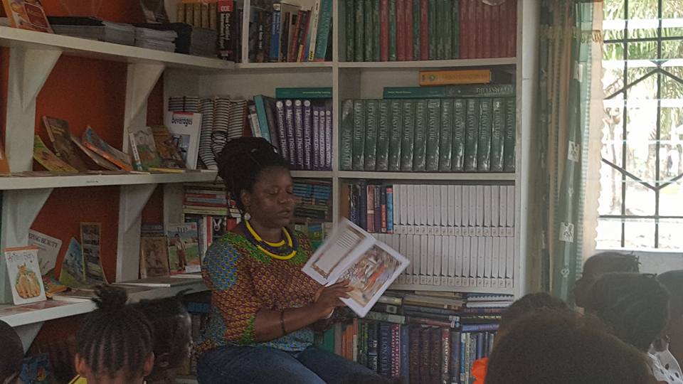 Thanks to Korto Reeves Williams for coming by to read to the kids at the reading room recently. As usual, we promote literature written by Liberian authors and the kids enjoyed the book “The Palm Cabbage Party” written by Brandy & Milly Wolova